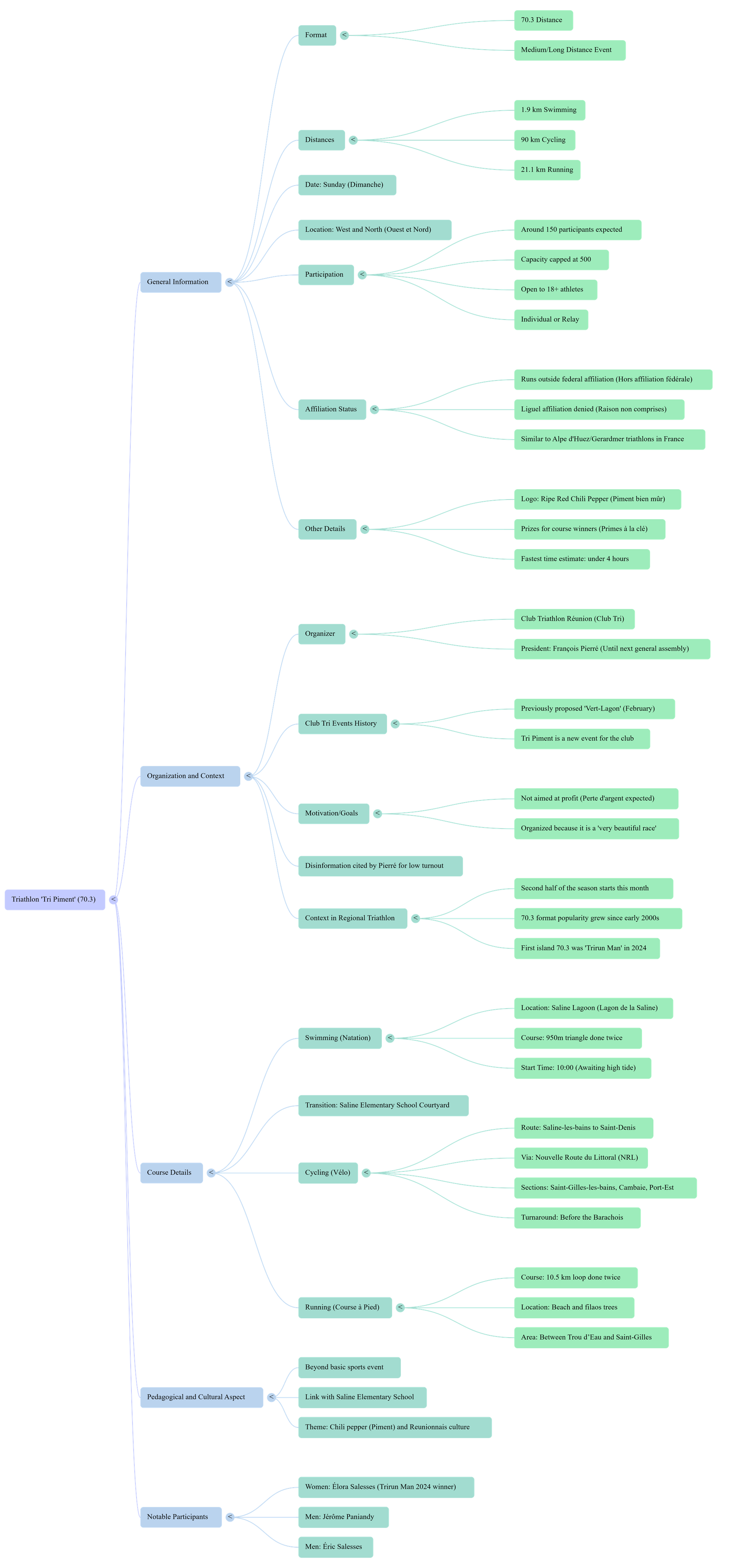 The "Tri Piment" triathlon is a 70.3 format event organized by the "Club Tri" (Club Triathlon Réunion) which takes place on a Sunday in the West. This format is specifically aimed at medium and long distance enthusiasts , nicknamed "pouakés" .
