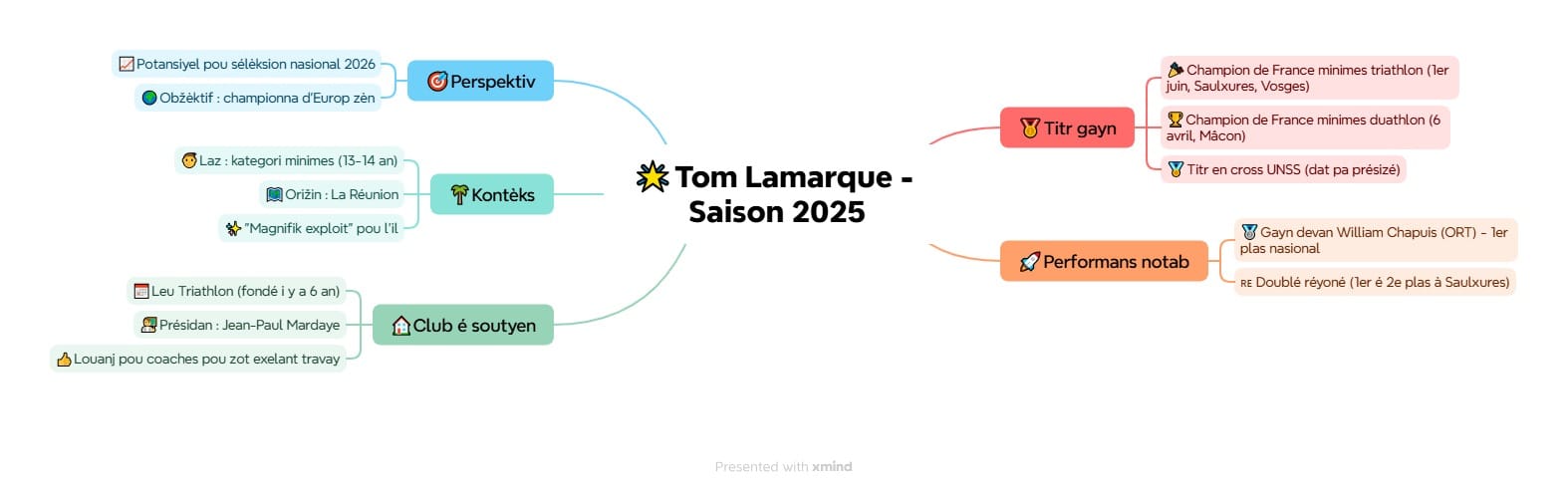 Tom Lamarque la gayn son titr Champion de France minimes de triathlon le 1er juin 2025, lor dun course ke li la déroulé à Saulxures, dans les Vosges.